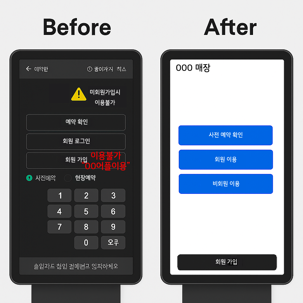 | 복잡한 키오스크 UI | 이용법 문의 급증, 리드타임 증가 |