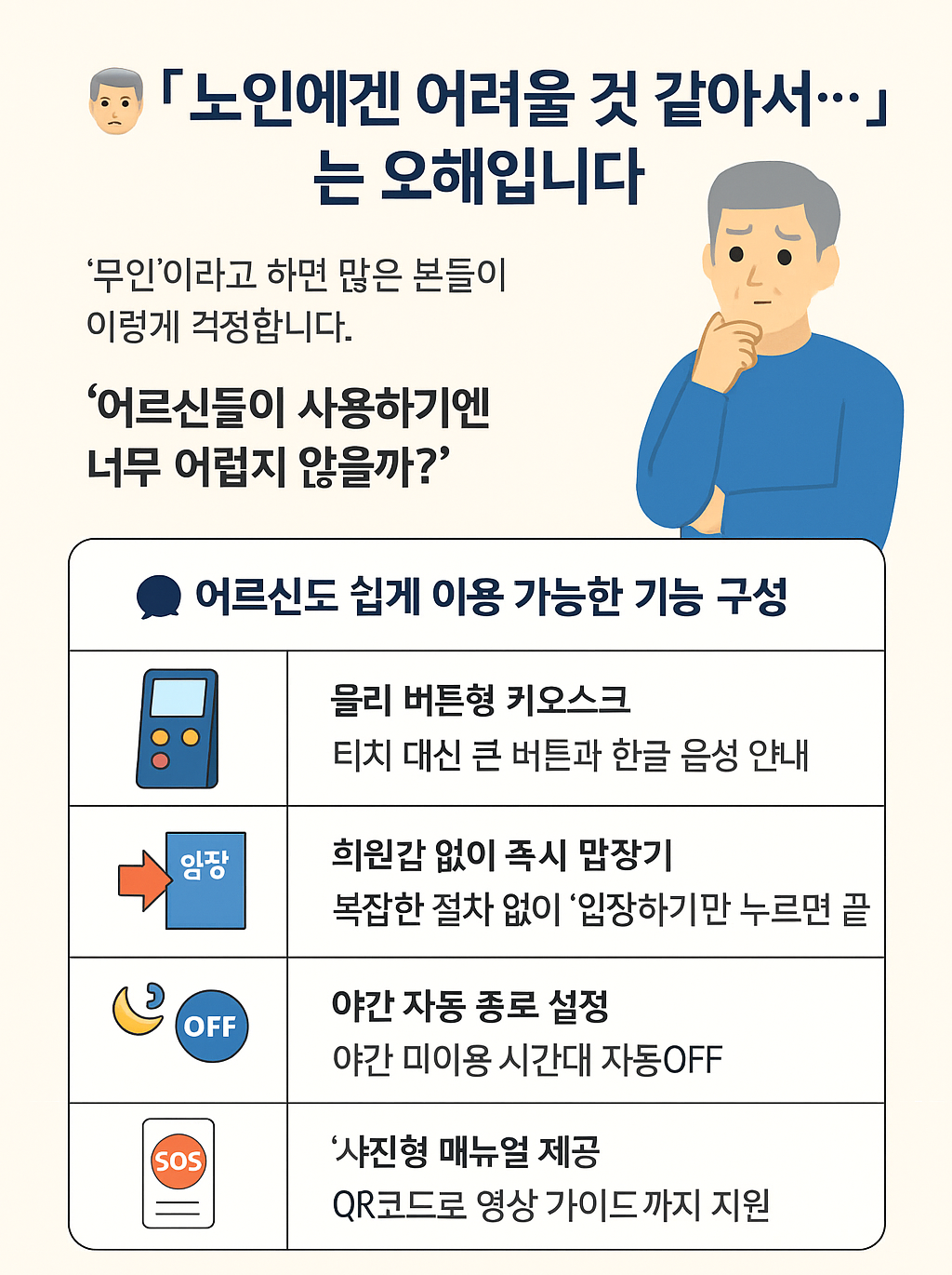 하지만 노인을 위한 무인화 설계는 충분히 가능합니다.